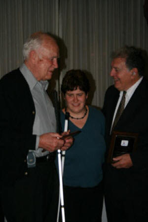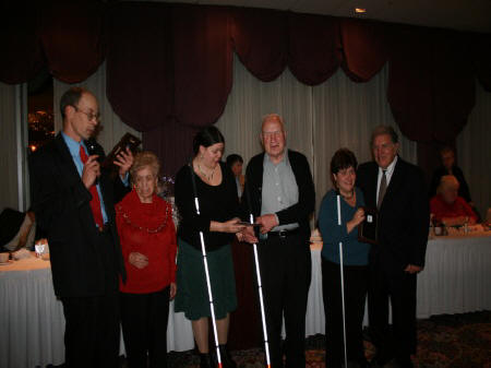 Presentation to Tom Robertson: President Jacobsen presented a plaque to Tom Robertson which stated “National Federation of the Blind of New York State - Presented to Tom Robertson in recognition of your service to the blind of New York State. You work with us as a partner, you expanded the programs of the Commission and you brought the blind of our state to a place where we could begin to imagine the possibilities. For this and for many other reasons we call you our colleague, with respect, our friend with joy, and our brother with love. October 22, 2005.” Tom responded and expressed his gratitude.