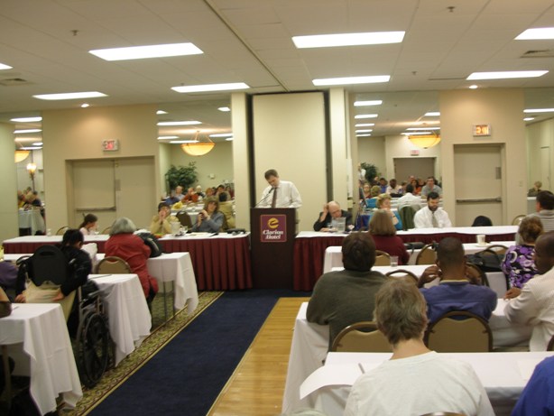 Also during the day Friday, various pieces of technology of interest to blind and visually impaired persons, particularly the Kurzweil/NFB Personal Reader, were available in a jam packed exhibit room. The technology fair was arranged by Mindy Fliegelman.
