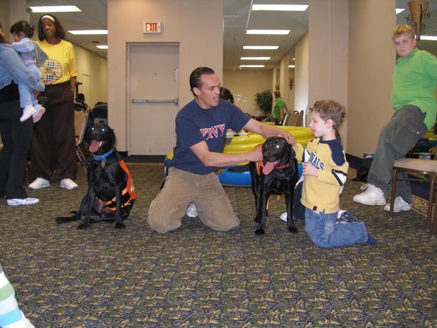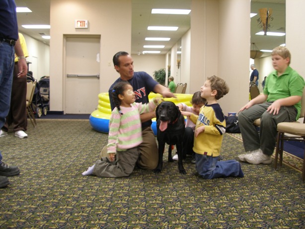 While their parents attended the meetings Friday and Saturday, the kids enjoyed a playroom packed with activities and a visit by an Albany Fire truck and ambulance which they could explore. They then had a chance to play with Leo and Keena, search and rescue dogs of New York Search and Rescue. These dogs aided in the search and rescue operations following the 9/11 attacks. The children enjoyed demonstrations of the dog's abilities by their handlers Joe Fortis and Bill Davis.