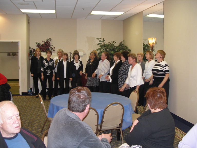 The traditional hospitality and entertainment was held on Friday evening. Not only was there plenty of opportunity to converse and enjoy old friends, the conventioneers were also treated to by the melodious sounds of the Sweet Adeline's, scapula Chorus. They sang Kickin' It up a Notch, and Shine Your Light.